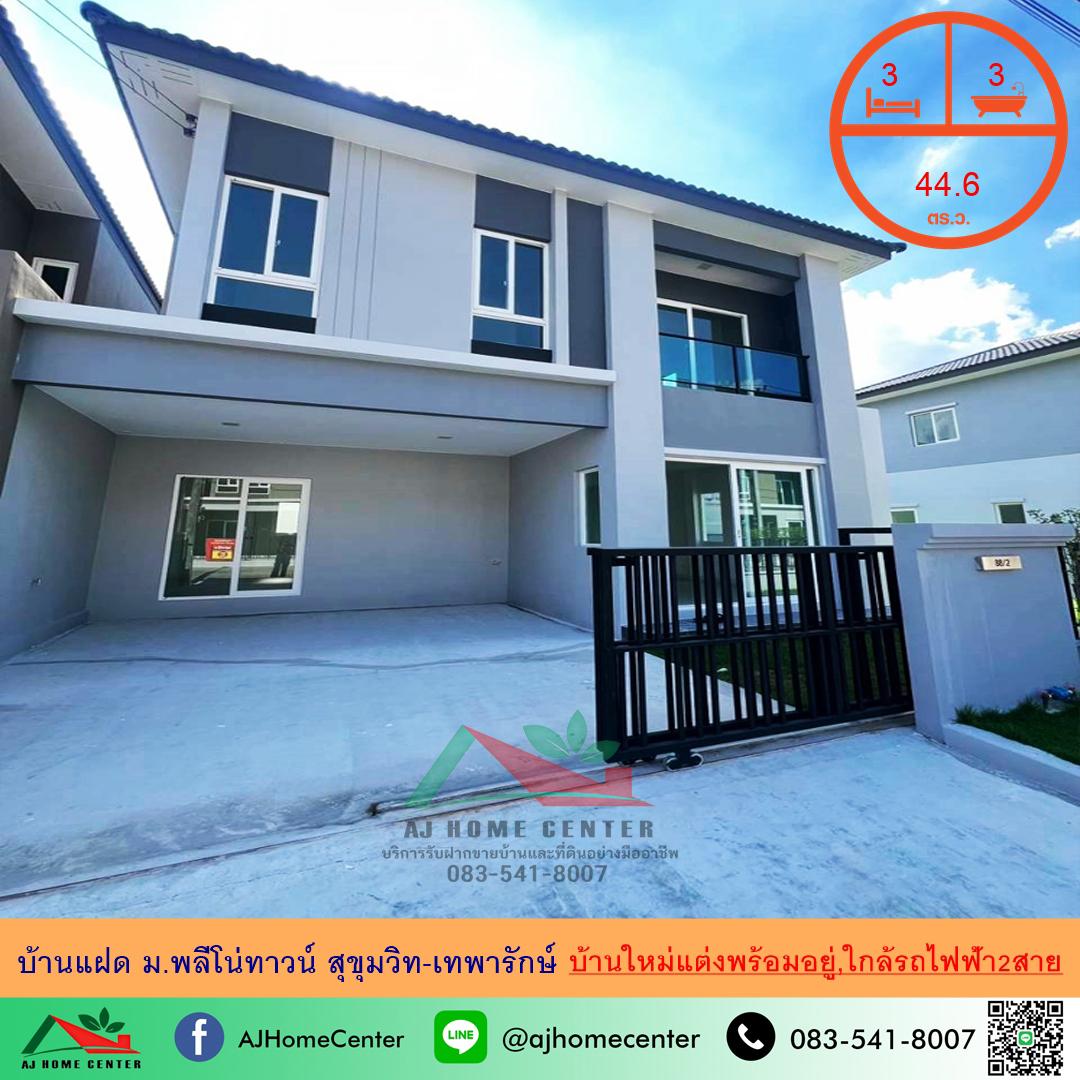 ขายบ้านแฝด44.6ตรว. ม.พลีโน่ทาวน์ สุขุมวิท-เทพารักษ์ บ้านใหม่แต่งพร้อมอยู่ ใกล้รถไฟฟ้า2สาย