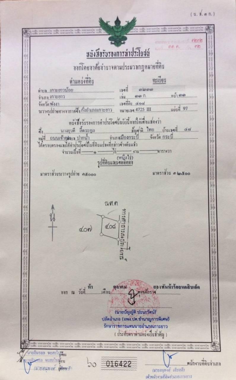 -  Nor Sor Sam  kor ก /  นส 3 ก  a. Area 1 rai