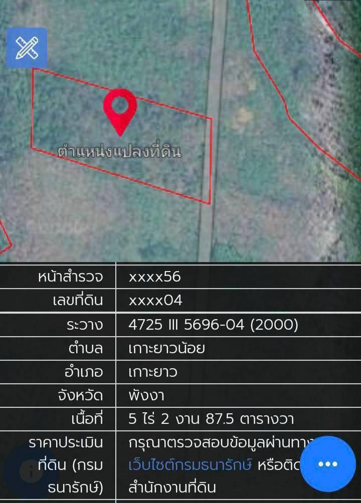 - โฉนดที่ดิน เนื้อที่ 5 ไร่ 2 งาน 87.5 ตารางวา