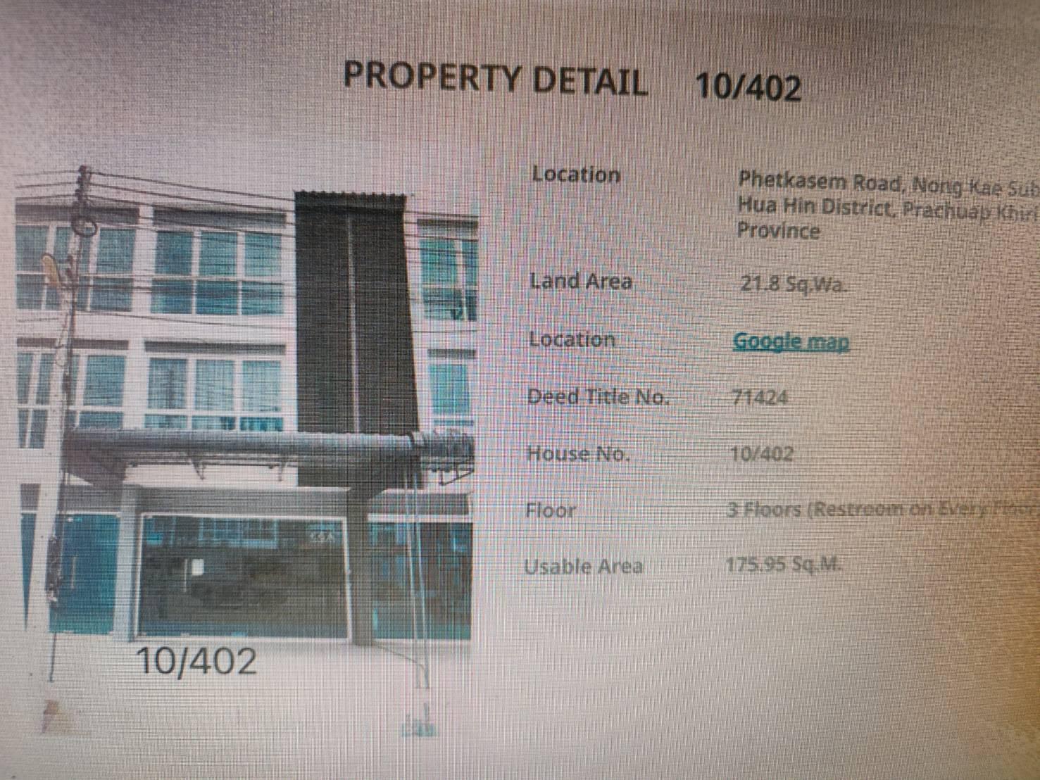 3 storeys area 22.2 sq.wah or about usable area 175.95 sqm.